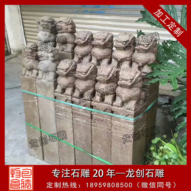 石雕拴馬樁樣式齊全、規格不一,常見的石雕拴馬樁都是方20cm的柱子,高度在1.5-2.0米之間,其最主要的不同便體現在它最上面的柱頭上。石雕拴馬樁的柱頭雕刻樣式很多,有雕刻獅子的、雕刻麒麟的還有雕刻