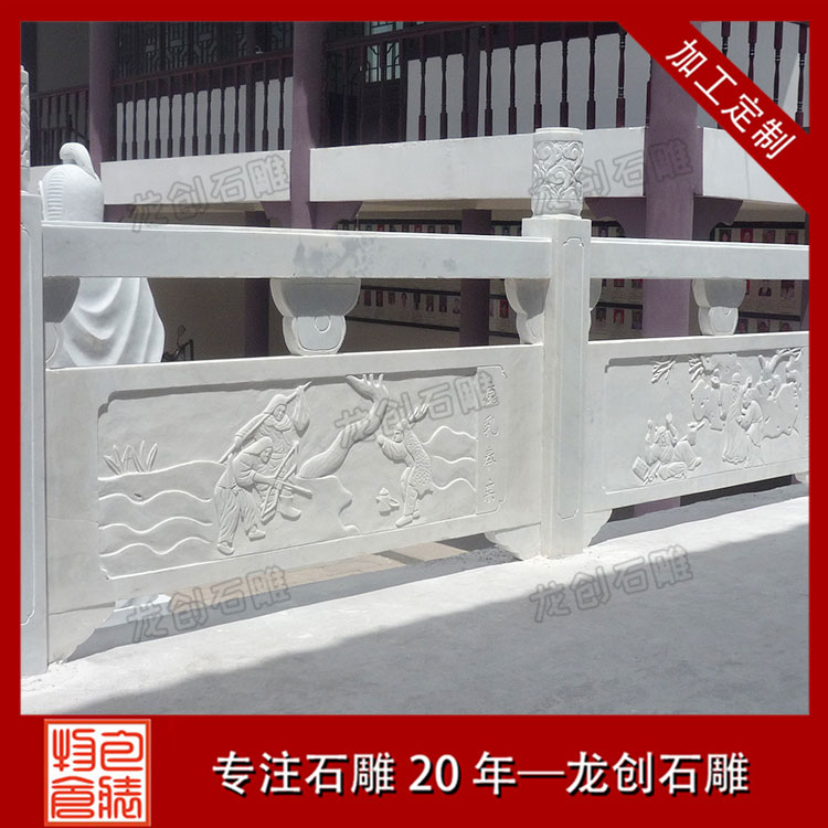 2、漢白玉欄桿的雕琢工藝:雕琢工藝的難易程度也是影響漢白玉欄桿價(jià)格的重要要素之一。一般咱們根據(jù)客戶供給的雕琢設(shè)計(jì)圖進(jìn)行加工,常見的雕琢工藝有浮雕、線雕、透雕、陰雕、圓雕、鏤雕等等。有的石雕欄桿用線雕,有的石雕欄桿用浮雕,雖然規(guī)格相同,但是由于雕琢的工藝不同形成消耗的工時(shí)不同,石雕欄桿價(jià)格自然也是不一樣的。