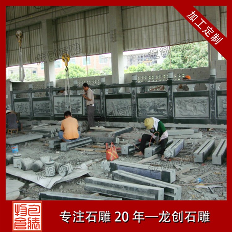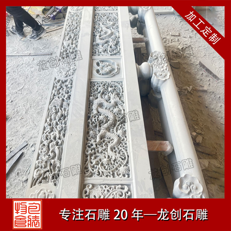 精湛絕倫的雕刻工藝,是石雕欄桿藝術靈魂的綻放。從細膩入微的線刻,到層次分明的淺浮雕,再到栩栩如生的高浮雕,每一種技法都在工匠們的手中運用自如。花卉圖案嬌艷欲滴,仿佛能聞到陣陣芬芳;動物造型活靈活現,似在欄桿間嬉戲玩耍;神話傳說與歷史故事場景更是生動逼真,讓人仿佛穿越時空,沉浸在無盡的文化海洋之中。