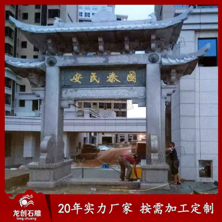 農村村口牌坊要多少錢?這是購買石牌坊的客戶心中最想知道的答案,關于在農村村口造一個牌坊需要多少錢?什么價格的都有,價格七八萬的有單門牌坊,十來萬的有一般的村口石牌樓,還有三十多萬的豪華石牌坊等圖片樣式,農村牌坊石雕報價主要和圖片樣式、尺寸大小、石材、雕刻工藝有主要關系。