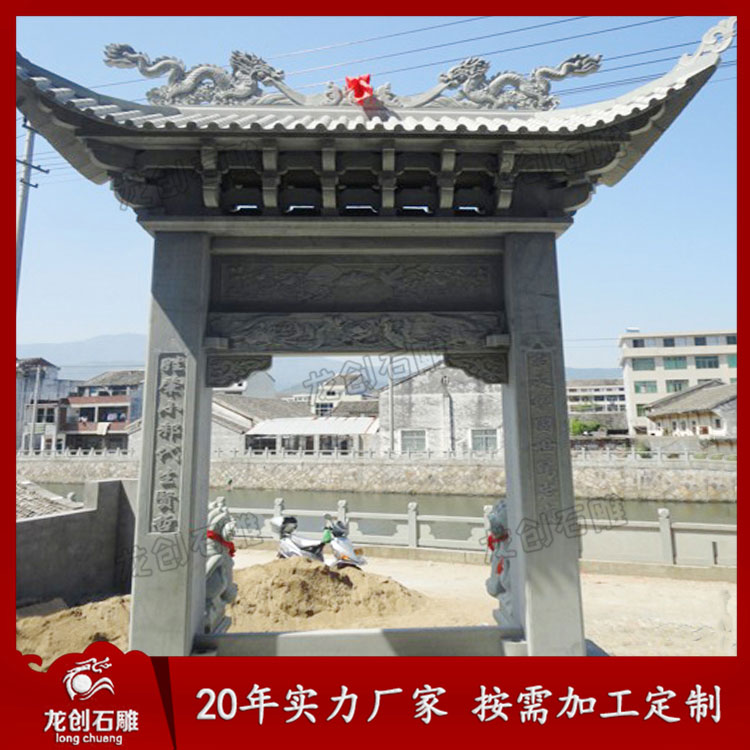單門牌坊及一門石牌坊在農(nóng)村地區(qū)比較常見,尤其是現(xiàn)代新農(nóng)村建設(shè)中因為建設(shè)的道路較小,寬度不夠,所以很多村莊會用單門牌坊來美化環(huán)境。單門牌坊通常起到了標志地名以及裝飾性作用,在實際雕刻的時候應當要考慮到當?shù)氐奶厣约帮L土人情等情況,從而能夠雕刻出更為精致的石牌坊作品,展現(xiàn)出石牌坊的建筑之美。單門牌坊在人們的生活中,有很多不同的制作樣式以及種類,不同的制作樣式給人們的生活帶來不同的視覺感受,同時也讓人們體會到不同的建筑物魅力。