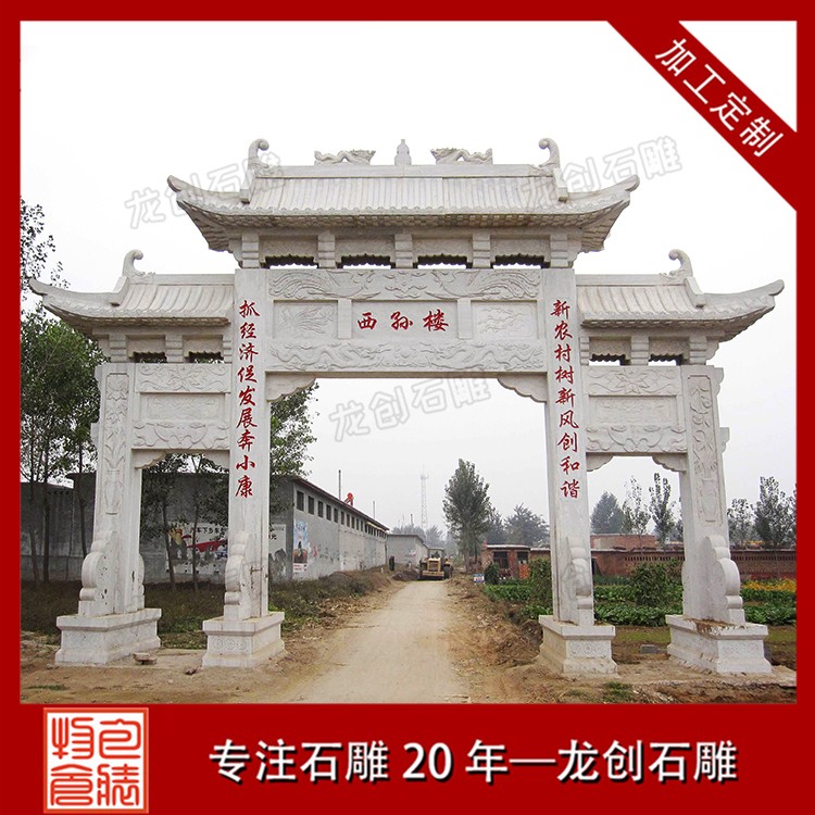 石雕牌坊是我國傳統(tǒng)古建筑的一部分,村莊石雕牌坊也稱村口石雕牌坊、農(nóng)村石雕牌坊,一般是建在村莊的入口處,村莊石雕牌坊是一種仿古建筑,古樸大方,具有很高的歷史文化價(jià)值和觀賞價(jià)值。