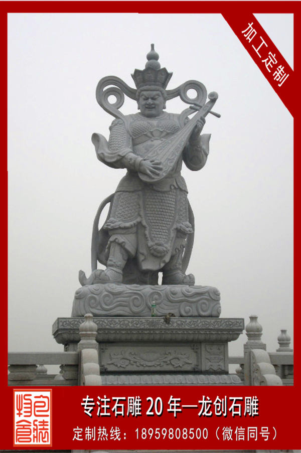 四大天王是佛教的護法天神。四大天王,又稱護世四天王,是佛教三十三天中的四尊天神,位于第1重天。第1重天又叫四天王天,通常分列在凈土佛寺的第1重殿的兩側,天王殿因此得名。坊間傳聞四大天王護世于須彌山山腰上的四天。東方持國天王,持琵琶,護持東勝神洲;南方增長天王,持劍,護持南贍部洲;西方廣目天王,持蛇或赤龍,護持西牛賀洲;北方多聞天王,持傘,護持北俱蘆洲。