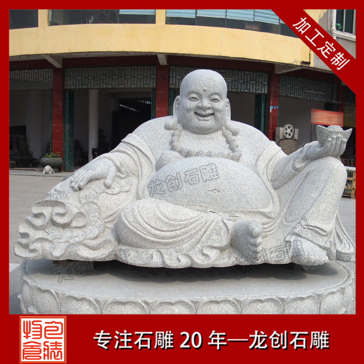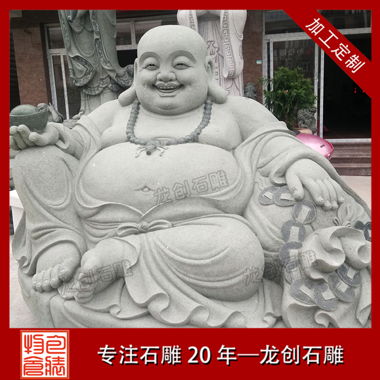 常見的彌勒佛像大都是圓頭大耳、袒胸開懷、笑容滿面的,后人則根據他獨特的笑容和開懷的大肚,在各處供有大肚彌勒佛像的寺廟里題寫出許多妙趣橫生、飽含深意的楹聯。人們對他的笑容印象很深刻,因此也被稱為石雕笑佛,惠安石雕笑佛批發,歡迎選惠安龍創石雕。