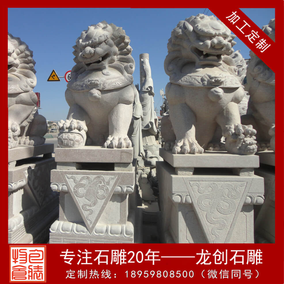 石獅一般都是左雄右雌。 由于獅子的鎮煞之氣極大,一般的家庭承受不了,所以很少使用。獅子一般只合適擺放在室外或玄關,不宜擺在室內其它位置,否則反而簡單構成煞氣,傷及身體。獅子頭必定要朝外,且前方要有必定的寬闊空間,不能成為“困獸”。獅子必須成對擺放。